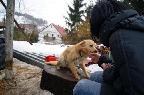 mit er etwas mehr vertrauen an Menschen gewinnt, es sind jedoch sehr langsame Schritte, die beiden Damen dürfen ihm sein Futter bringen, auch Leckerchen rei-