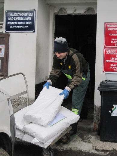 Die ersten 300 kg Hundefutter konnten wir anläßlich unseres Arbeitseinsatzes am 25.02.2012 im TH Jelenia Góra übergeben.