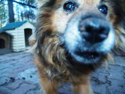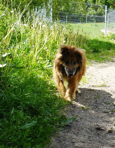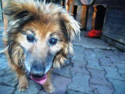 Kleiner Mischlingsrüde, ca. 16 Jahre alt, sehr schwach.