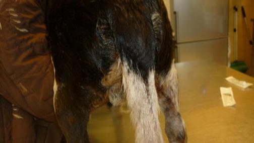 Hier sieht man ein bisschen die Wunden am After : Ich wollte ihm kein Weh antun und die Rute nach oben heben um nur zu fotografieren ...
