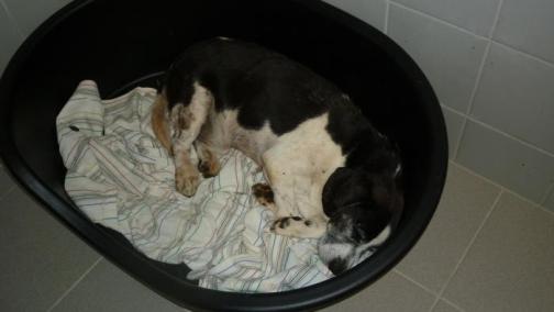 Pascalchen ist ein Kaempfer ! Wir sind sehr glücklich, denn er scheint über den Berg zu sein. Er frisst mit großem Appetit , trinkt , geht sehr gerne Gassi, bellt wieder andere Hund an und zeigt, dass er Lust aufs Leben hat ! Auch wenn seine Wunden noch immer eitern, so ist doch zumindest das Fieber weg !