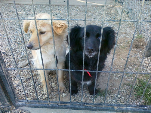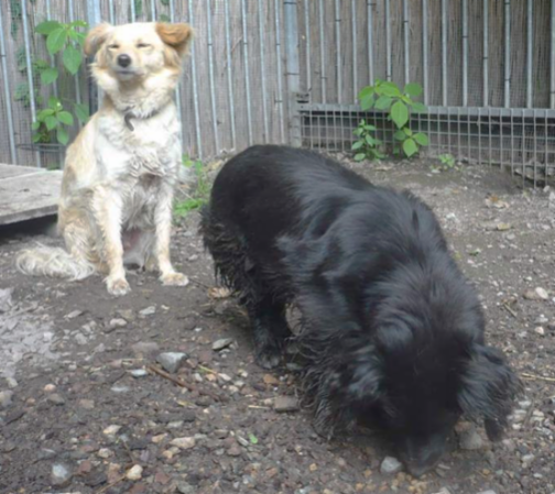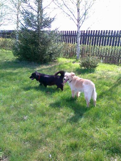 Freda (Figa) ist die dunkle Hündin, ca. 6 Jahre, Anna (Mucha) ist die helle und erst zwei