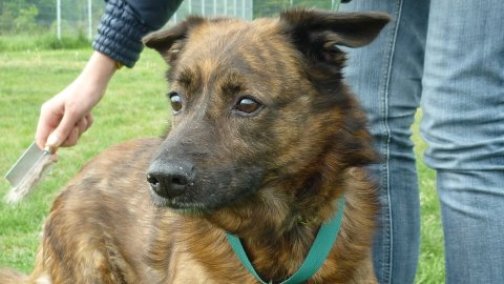 Siggi ist ein bescheidener und schuechterner Hund. Dadurch, dass er seine grossen Vorteile den Menschen nicht praesentieren kann, sitzt er bei uns im TH schon so lange. Im Kontakt mit den Menschen ist Siggi ein fantasticher Hund, so ruhig, gehorsam, sehr freundlich und verschmust. Seine sanfte Art und seine Gutmuetigkeit sind bezaubernd. Siggi hat im Zwin-ger die Rolle des Opfers und wird teilweise gemobbt.