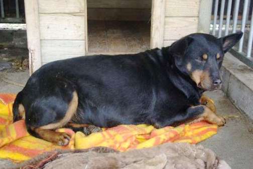 Szóstka wirkte auf uns sehr ängstlich und unterwürfig gegenüber den anderen Hündinnen des Rudels. Auch in unserem Beisein wurde sie von der Alphahündin angegriffen, so dass sich Szóstka nicht mehr in den Auslauf traute. An der Hinterhand hatte sie eine frische Bißwunde.