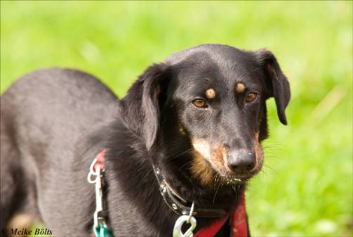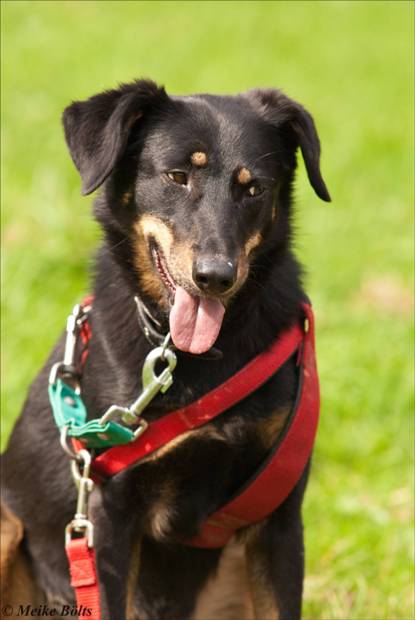 Die aufgeweckte Mischlingshündin hält ihre Betreuer ganz schön auf Trab. Ihr Jagdtrieb ist nicht zu unterschätzen. Sie liebt ihre Bezugsperson über alles, wenn sie diese einmal in ihr Herz geschlossen hat, weicht sie ihr nicht mehr von der Seite. Da werden selbst die interessantesten Spuren langweilig. Eris besucht unsere Hundeschule und entwickelt sich fast zum Streber. Dankbar nimmt sie alle Aufgaben an.