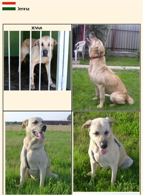 Die Hündin Jenna stammt ursprünglich aus der Tötungsstation Illatosut in Budapest. Sie war ein extremer Notfall und halb verhungert. Sie konnte zum Glück gerettet und aufgepäppelt werden.