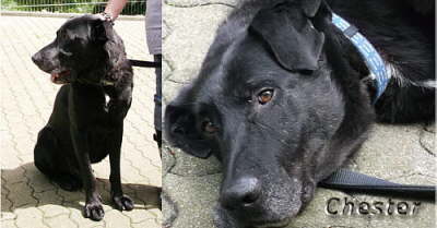 Chester ist ein 5-6 jähriger kastrierter Labrador-Schäferhund Mix Rüde.