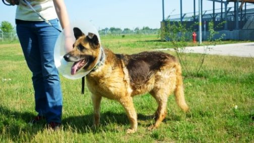 riesigen Tumor im Bauch hatte. Wir haben mit der Bueroleiterin gesprochen, dass die Huendin hoehstwahrscheinlich eingeschlaefert werden muss.