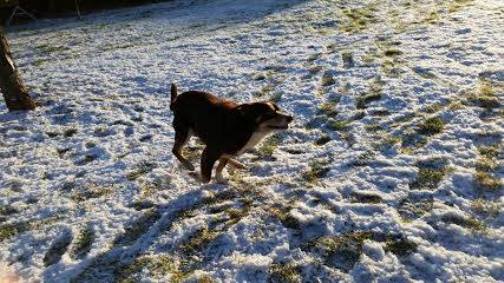 um das Vertrauen zu gewinnen ..., bei Spaziergängen lauft er frei, und kommt problemlos wieder zurück.