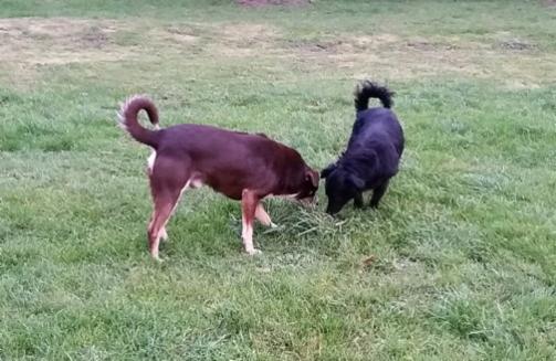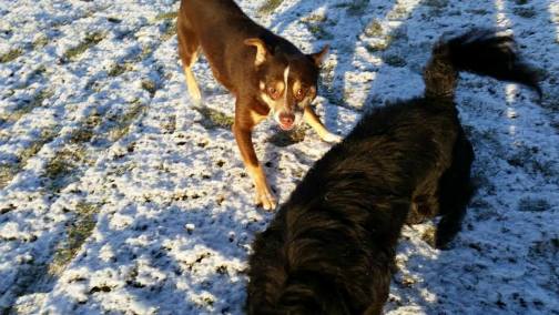 Die zwei extrem scheuen Hunde, die bei der Erstaktion nicht eingefangen werden konnten, sind nun auch in der Hundepension eingetroffen.
