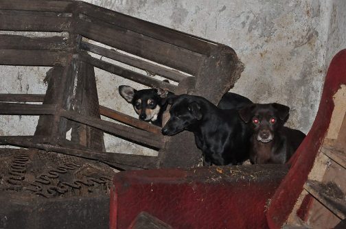 Dort lebten 10 Hunde beiderlei Geschlechts (8 erwachsene Hunde und 2 Welpen), die ganz sicher in ihrem Leben nie einen Tierarzt gesehen hatten, geschweige denn geimpft, oder
