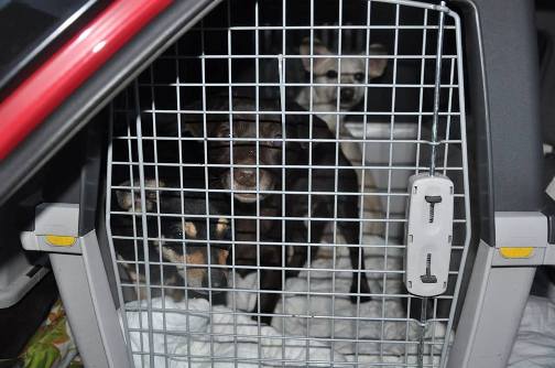 6 Hunde und 2 Welpen konnten gleich beim ersten Versuch eingefangen und in Transport-boxen abtransportiert werden. Die 6 erwachsenen Hunde wurden zur Hundepension ge-