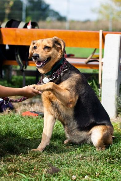 Auch wenn sie anfangs etwas aengstlich und schuechtern sein kann, ist sie doch sehr verschmust und auch noch verspielt. Sie macht auf Kommando : " Sitz ! und Gib Pfote !