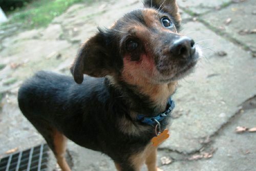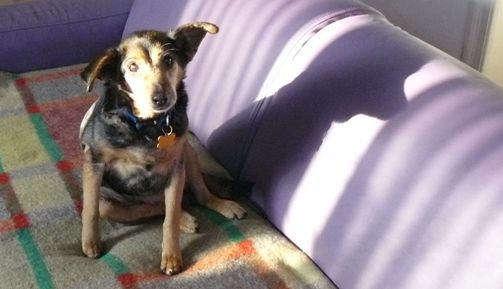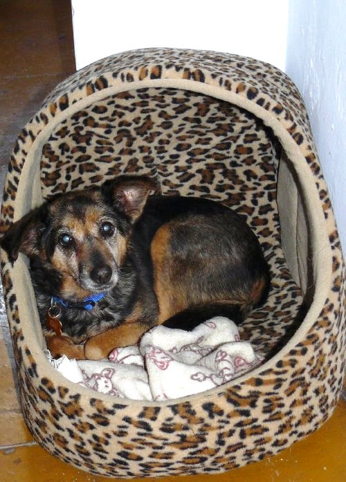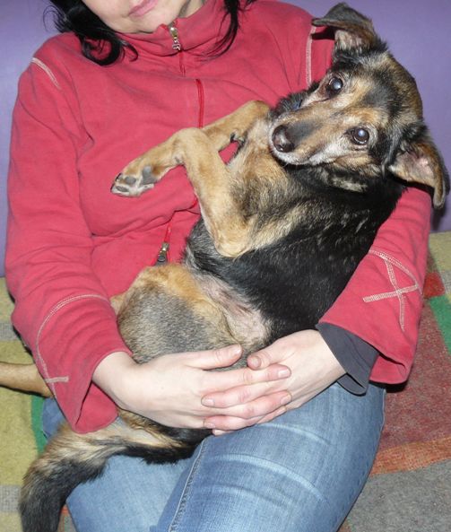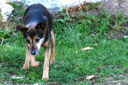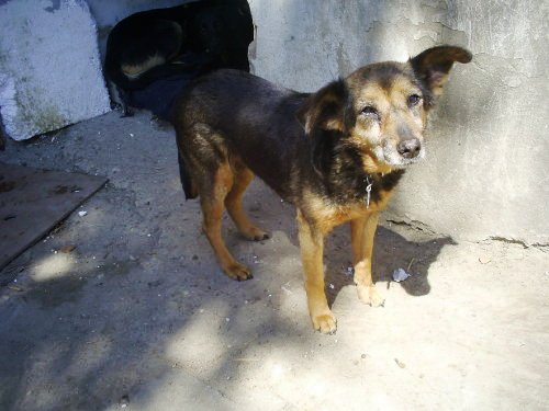 Maja, Huendin, ca. 40 cm groß, ca 12 Jahre alt. War ganz schwach und abgemagert.