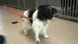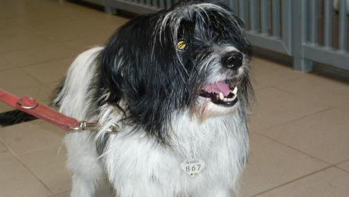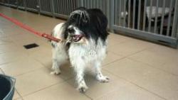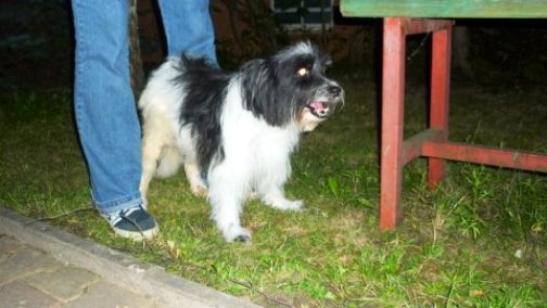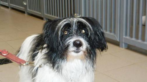 Kleine Mischlingshuendin, ca. 10 Jahre alt, behindert.