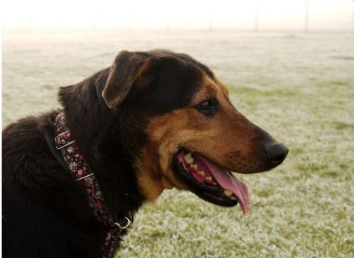 Atos ist ein fünfjähriger, lieber und sportlicher Mischling. Der kniehohe Hund