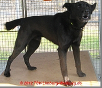 Blacky ist etwa 5 Jahre jung, schon kastriert, ein kniehoher Labradormischling, sehr lieb,