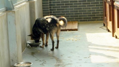 Dustin ist ein guter und sehr lieber Hund. Er sehnt sich sehr nach dem Kontakt mit den Menschen. Er kommt immer zu den Gitten "Hallo" sagen und moechte gestreichelt werden.