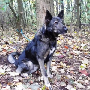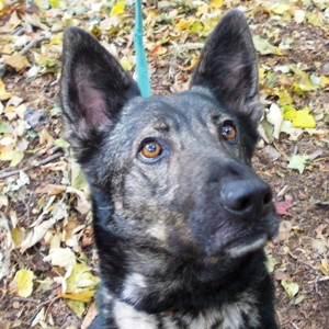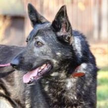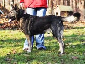 Dustin ist ein kastrierter, grau-wolfsfarben gezeichneter Schäferhund-Mix. Er wurde