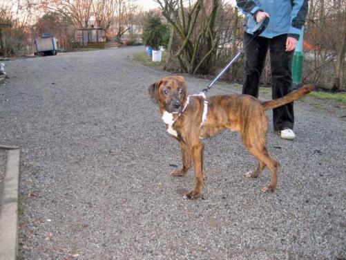 Boxermix. Ich verstehe mich supergut mit anderen Hunden, liebe alle Menschen, würde gerne etwas Erziehung genießen. Toben, tollen, Halligalli, das ist meine Welt."