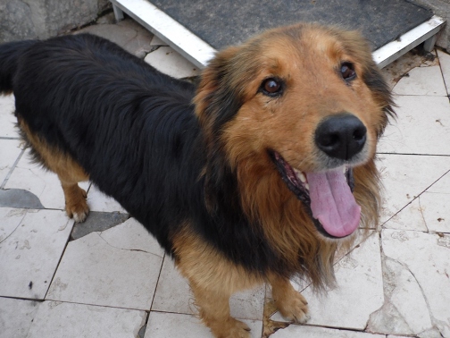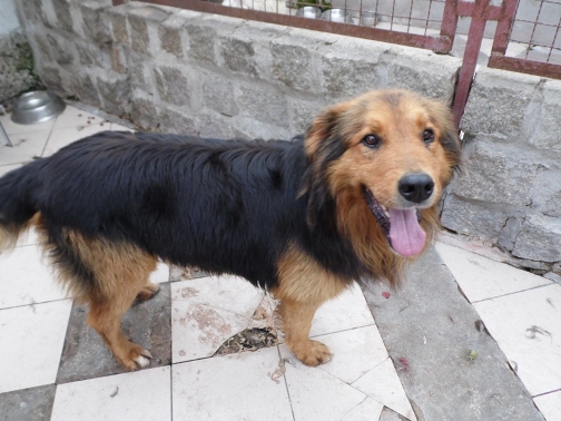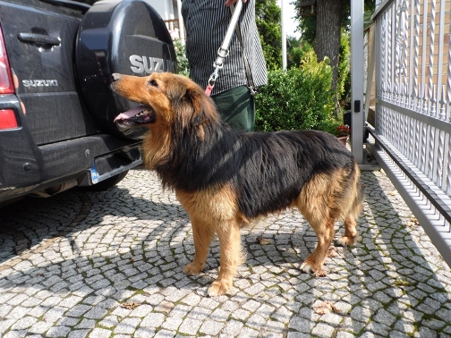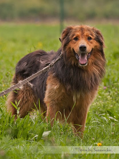 Beschreibung: Rufi ist ein sehr schöner Hund mit langem braun-schwarzen Fell. Er kam