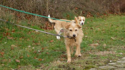 klebe ich wie eine Klette, nimmt sie mich auch täglich ran. Eine Schleppleine auf der großen Wiese an der Zschopau und nun musss ich folgen lernen, klappt schon gut – von 10x rufen komme ich 8x, die anderen 2x setzt sich Frauchen durch, geht einfach mal in eine andere Richtung. So weit bin ich schon, ich muss hinterher und dann klappt auch das rankommen