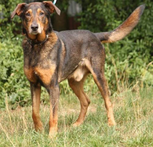 Don ist ein sehr schlanker und hochbeiniger Schäferhundmischling, der mit seinen gut 12