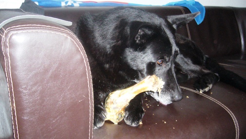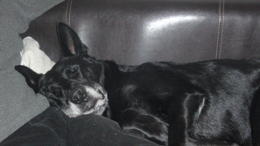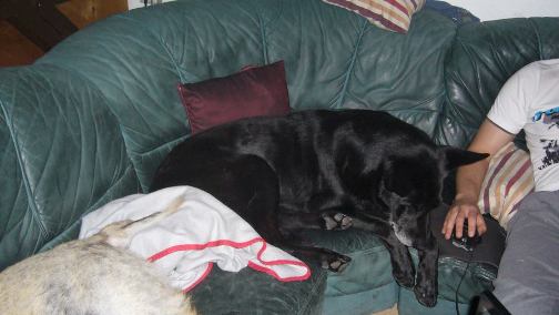 Hier auf seinem absoluten Lieblingsplatz, der Ledercouch ...