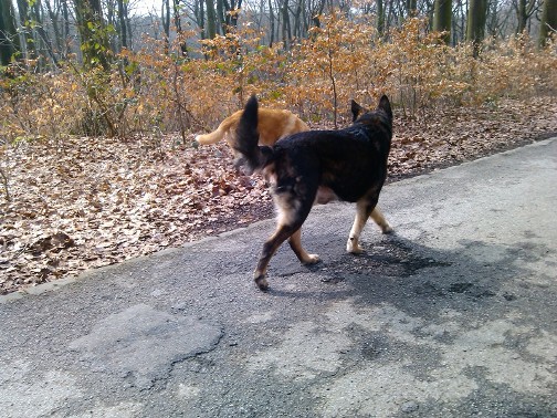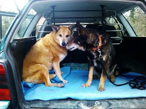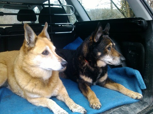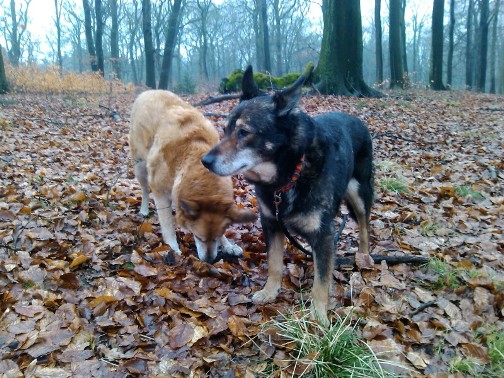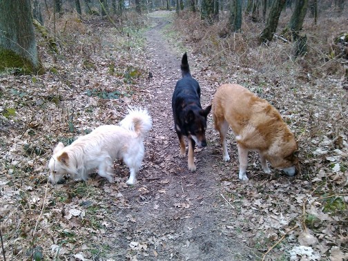 Wir machen pro Tag im Moment mehrere, dafür kürzere, Ausflüge in den Wald, die Tarzan und Zora sehr genießen. Wenn Tarzan etwas länger schüffelt, wartet Zora auf ihn. Das ist toll !!! Selbst Autofahren ist für ihn schön, da er es inzwischen mit Waldspaziergängen ver-bindet und die lange Fahrtzeit im LKW scheint vergessen. Zuhause ist er super entspannt, schläft und träumt nach und von unseren Spaziergängen. Er hat sich wahnsinnig schnell eingelebt und genießt es sehr, gekrault und gestreichelt zu werden."